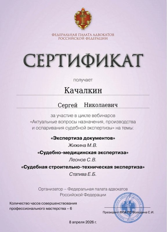 Хотите убедиться, что документы составлены корректно? Или потребовалось участие адвоката в судебном заседании? Если вам требуется консультация в области правоотношений, Сергей Качалкин предлагает вам свои услуги. Специалист поможет разобраться в особенностях юриспруденции, составить прогноз по конкретному делу и обозначить план действий. Специалист может предложить свою профессиональную помощь в сфере трудового, налогового, арбитражного процессуального, уголовного и других отраслей права.